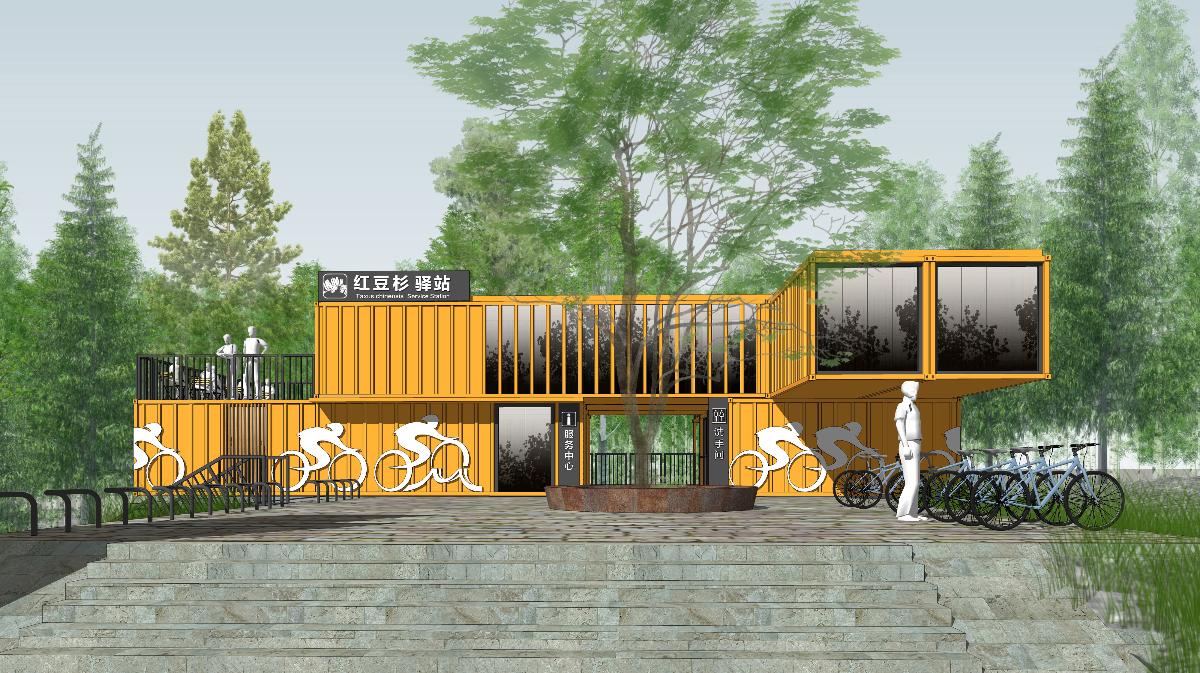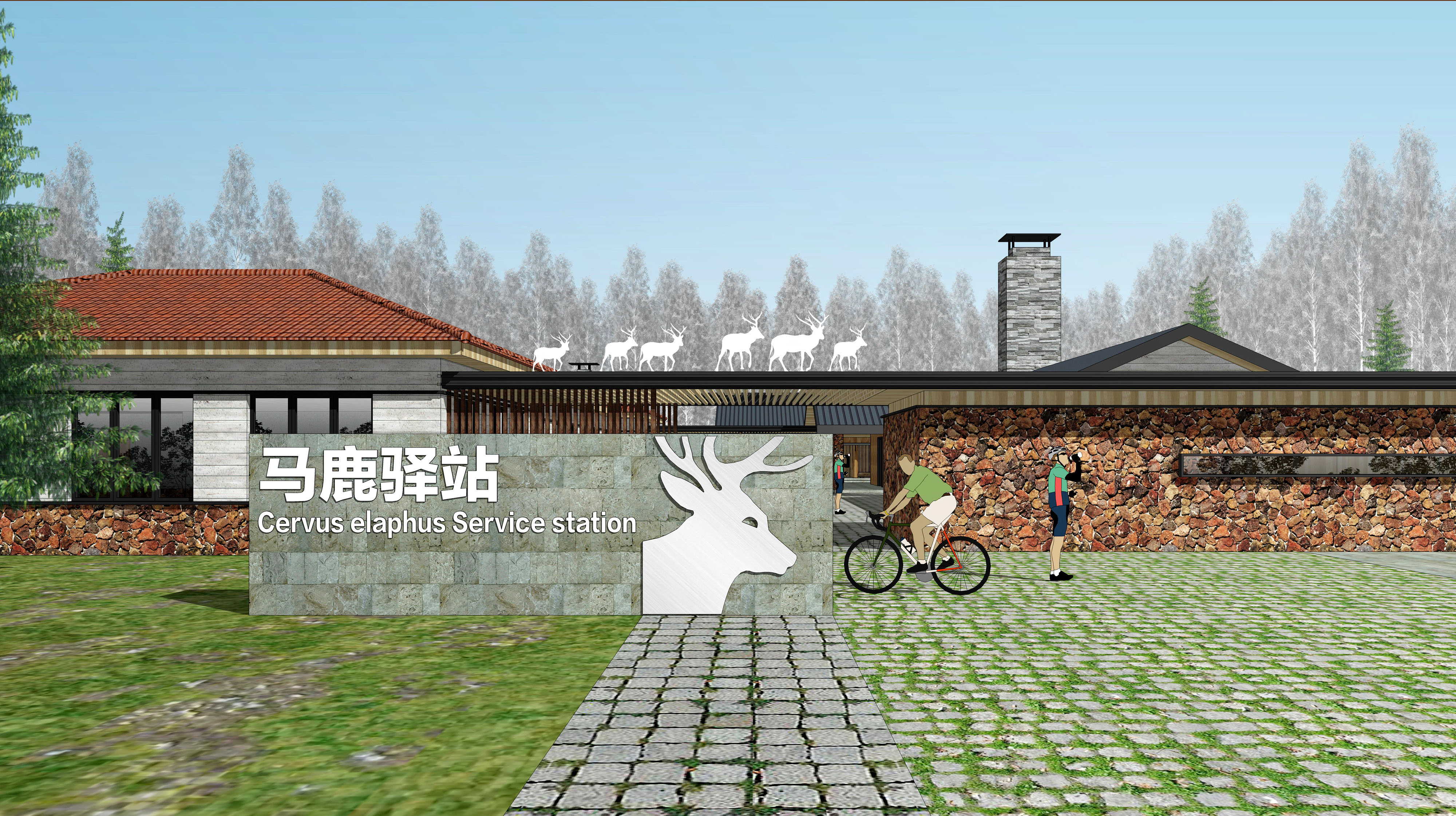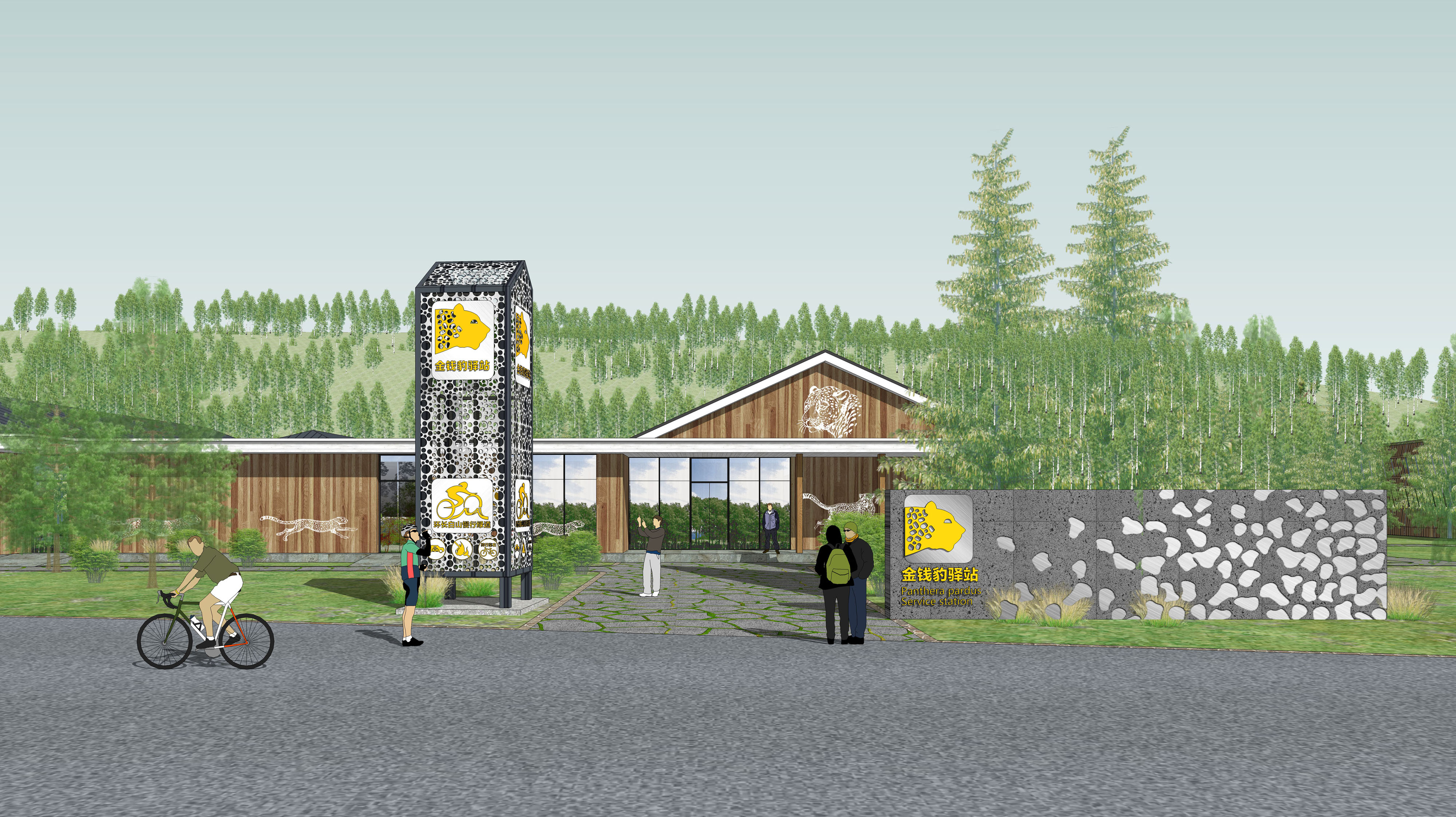 驛站即景點:將最具有長白山代表性的動物、植物以及文化主題創意融入到驛站的建筑設計、景觀設計、公共家具設計以及標識系統設計中,驛站不單單是慢行系統中服務功能節點,而成為形象突出的、具有標識性吸引力的景點;
