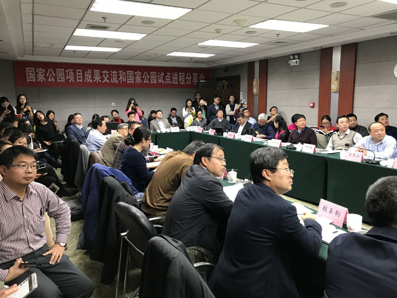 來自國家公園體制建設相關的政府部門、科研機構、國家公園試點區和非政府組織等幾十位代表出席了此次會議,解讀《建立國家公園體制總體方案》(下稱《總體方案》),及當前國家公園體制建設的核心問題;交流各方國家公園相關議題研究情況,探索《總體方案》落地所需的理論依據、科學技術支持、政策創新和實踐操作。分析國家公園試點區建設進展、困難和訴求,討論國家公園研究如何進一步支持試點建設。