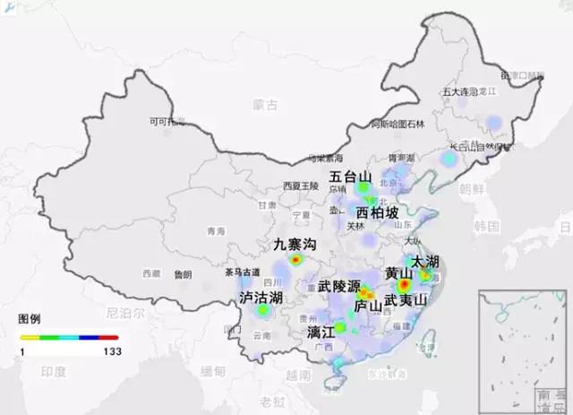 通過對這些知識域的分析得出一系列研究結論,其中吳教授對胡煥庸線進行了針對性研究,從省級旅游目的地、市縣級旅游目的地、景區案例研究的分布圖看,其分布整體上依然遵循“胡煥庸線”規律。