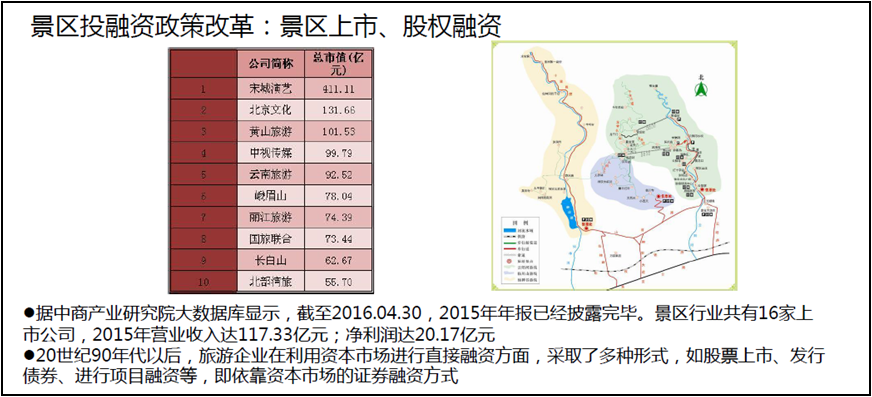 在政策方面,還有一個問題是如何看待進入風景區的資本的力量。資本為什么不可以進入風景名勝區呢?風景名勝區是公共產品,無錫市政府是不缺錢的,但大多數地方政府是缺錢的啊,現在又不讓搞土地財政了,風景區要實現提供國民游憩的公共產品功能,沒有錢怎么可能提供?所以可以進行投資、融資、景區上市、PPP,這個是未來一部分城市型風景名勝區轉變為度假區的必要條件。