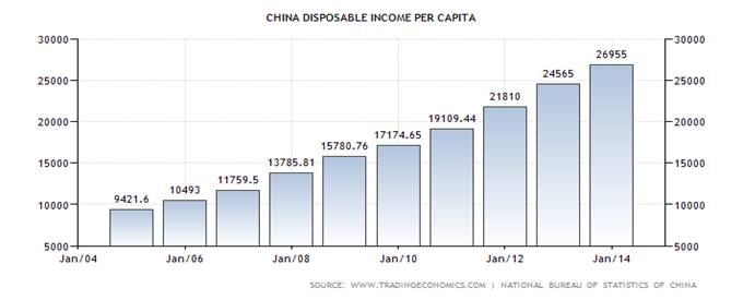 中國人均可支配收入遞增構筑中產階級,中產階級成為銅仁旅游的主要客源市場。
