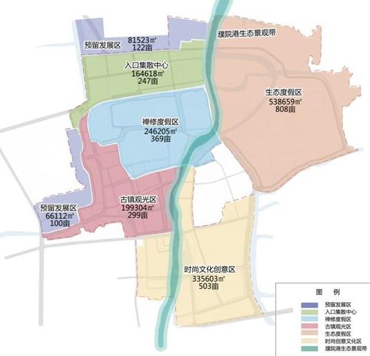 在空間布局上,按照古鎮為核、文化為脈、產業集聚的理念形成了“一帶·五區”的空間格局,即濮院港生態景觀帶;入口集散區、古鎮觀光區、禪修度假區、時尚文化創意區、生態度假區。層次分明、主題明確、形成區域均衡發展的空間態勢。