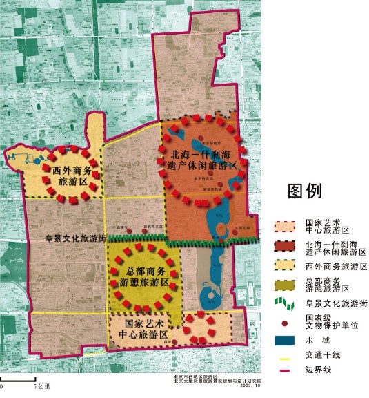 西城區(qū)是古都北京的遺產核心區(qū),擁有享譽中外的風景名勝、獨特的古都文化、現代化的商貿金融、一流的博物館修學資源及高品味的藝術文化資源,形成了獨具特色的五大旅游資源體系。從現有旅游資源分析,西城區(qū)也存在一些劣勢,比如由旅游資源轉化為旅游產品不多,整體形象不明確,旅游功能不夠完善,同時面臨周邊地區(qū)的競爭威脅。我們本著“超旅游”、“可持續(xù)發(fā)展”、“創(chuàng)新發(fā)展”和“人本主義”的原則,提出了形象戰(zhàn)略、產品戰(zhàn)略、規(guī)模戰(zhàn)略等三大戰(zhàn)略,推出“五區(qū)六街,二個專項產品”的優(yōu)先發(fā)展項目,力求打造西城旅游精品,充分展現西城區(qū)極富特色的城市魅力。