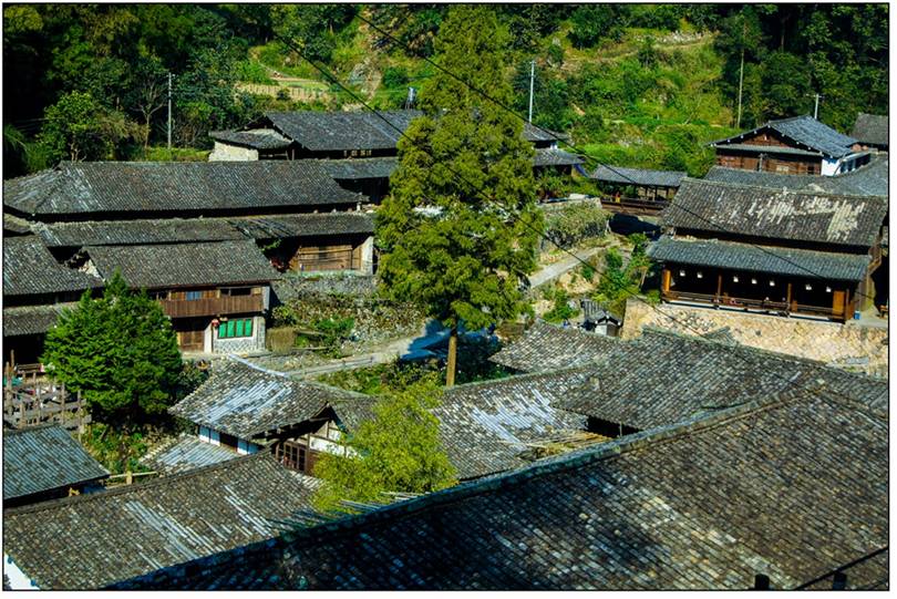 林坑村是一個歷史悠久、底蘊深厚的山民聚居處,約700余年歷史。古建筑是林坑古村最大的看點。林坑村的古民居多為黛瓦、原始木構、竹籬抹泥粉墻或卵石筑墻,地面鋪以灰色石塊,色彩樸素、自然。各宅院之間毫無封閉之感,有別于我國各地民居多呈“對外封閉、對內敞開”的封閉式風格。