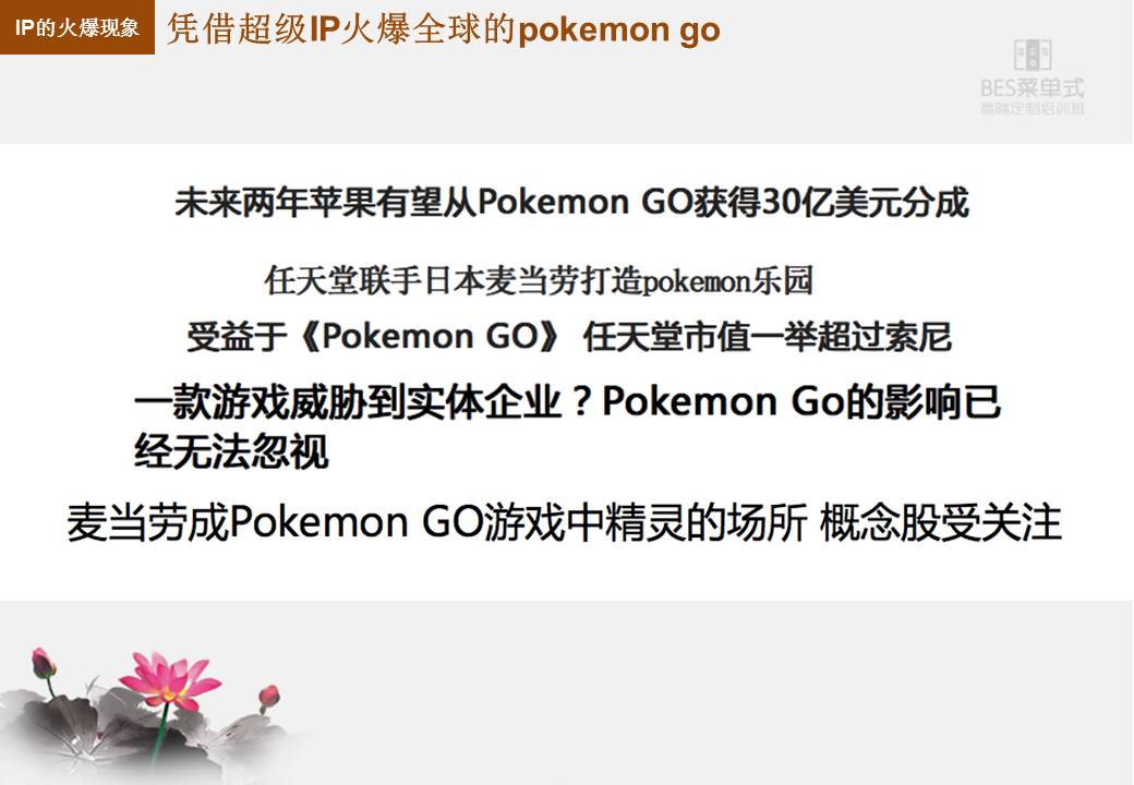 Pokemon GO上線三個月,任天堂的市值一舉超越索尼,而且就未來兩年內蘋果有可能通過這個游戲獲得30億美元的分成,這是非常夸張的事情。AR的技術已經存在一段時間了,而且類似的游戲已經開發很多,是相對成熟的技術,但之前的游戲都沒有達到這個高度。這樣一個超級IP與新技術相結合的時候,甚至跟傳統行業相結合的時候,可以產生不可預估的力量。