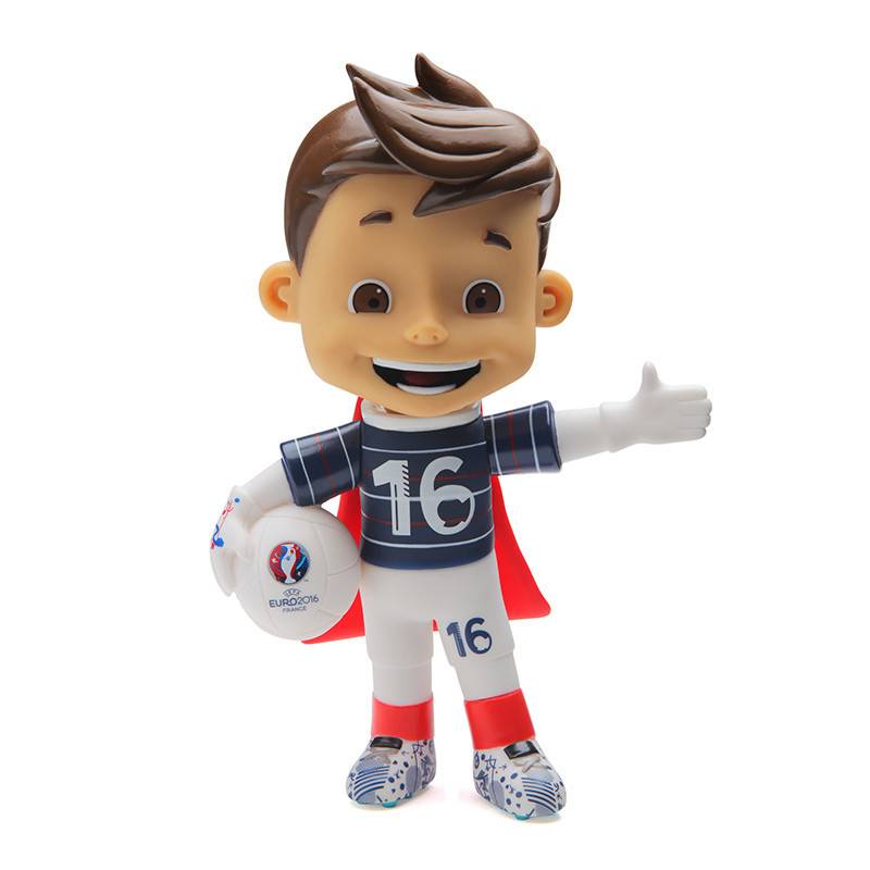 2016年法國歐洲杯吉祥物是一個擁有棕色短發(fā)和棕色眼睛,穿著藍白主色的16號球衣和白色球褲球鞋,披著紅色的超人斗篷的小男孩。這個小男孩被命名為“超級維克多”(Super Victor),這一名字是基于這個吉祥物小男孩在獲得魔法斗篷、球鞋以及足球后會獲得超能力。歐足聯(lián)官網(wǎng)解釋說,這是一個好奇心強而且機智的角色,他那一身裝備從東道主法國的國旗顏色上得到靈感,而這個孩子將鼓勵全世界的球迷為“足球藝術(shù)”一起歡慶。