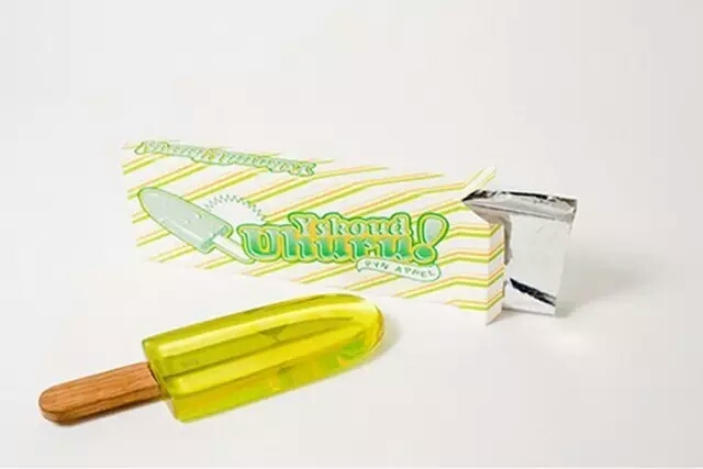 APKTNKA品牌的冰棒包裝將幾何圖案運用到極致,甚至不只是平面的印刷,觸感也是獨特的地方。顏色依然是冰激凌的顏色。