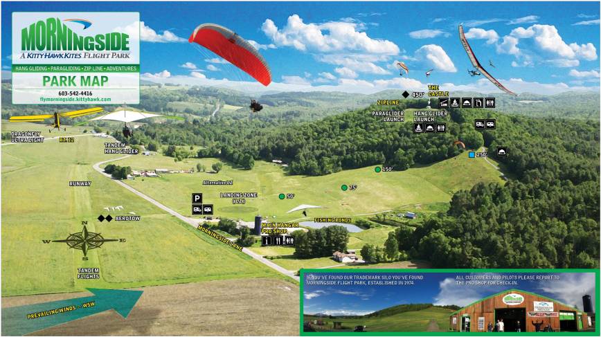 來看一下美國的Morningside Flight Park,這是點(diǎn)擊量最多,曝光量最多的一個(gè)飛行營地,這個(gè)飛行營地的評價(jià)非常有趣,通過用incredible、excellent、magical等這樣的詞匯來形容它的美好,那它是怎樣的一個(gè)地方呢?如圖是整個(gè)場地的鳥瞰,可以看到航空器、起飛點(diǎn)及降落區(qū)等,在技術(shù)要求上是沒有問題的。在坡道設(shè)置上,整個(gè)場區(qū)有三個(gè)不同斜度的坡道,分別適用于初學(xué)者、稍有經(jīng)驗(yàn)者和經(jīng)驗(yàn)豐富者,他們能從不同的坡道上邁出他起飛的第一步,而不是所有的人一下飛到天上去。這個(gè)坡道是我們未來,尤其是對大眾進(jìn)行飛行運(yùn)動培訓(xùn)的重要前提。整個(gè)營地做的最多的是滑翔傘、動力傘、滑翔翼等,是一點(diǎn)點(diǎn)逐漸建設(shè)起來的,是一個(gè)非常典型的航空飛行營地案例。