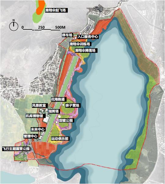 飛行營地核心建設(shè)區(qū):1000畝地,配有相關(guān)設(shè)施。