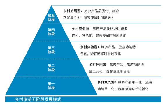 縱觀鄉(xiāng)村休閑旅游發(fā)展進(jìn)程,其產(chǎn)業(yè)發(fā)展模式整體呈五階段式發(fā)展歷程。具體而言,第一階段為單一的鄉(xiāng)村觀光游,即一般以農(nóng)戶自發(fā)式打造的農(nóng)家樂(lè)為載體,目的在于為來(lái)往路人解決溫飽問(wèn)題,主要表現(xiàn)為旅游產(chǎn)品單一化、旅游功能單一化、游客游覽時(shí)長(zhǎng)短暫化,面對(duì)的主要是景區(qū)過(guò)路客群,游覽時(shí)長(zhǎng)約一至兩個(gè)小時(shí);第二階段為鄉(xiāng)村休閑游,主要表現(xiàn)為旅游產(chǎn)品、旅游功能均呈二元化發(fā)展模式,即在農(nóng)家樂(lè)的基礎(chǔ)上融入采摘、攝影等輕質(zhì)化休閑產(chǎn)品,在解決游客游憩過(guò)程溫飽問(wèn)題的同時(shí)展現(xiàn)休閑娛樂(lè)功能,游客停留時(shí)間表現(xiàn)為單日化;第三階段為鄉(xiāng)村體驗(yàn)游,主要表現(xiàn)為旅游產(chǎn)品、旅游功能逐漸特色化,以滿足游客基本的鄉(xiāng)村過(guò)夜游需求為主;第四階段為鄉(xiāng)村度假游,主要表現(xiàn)為旅游產(chǎn)品及旅游功能兼具多樣化及特色化,以中端民舍、鄉(xiāng)村度假酒店等住宿產(chǎn)品為該梯隊(duì)主打產(chǎn)品,以滿足游客對(duì)精品住宿方面的需求為主要特色;第五階段則發(fā)展至鄉(xiāng)村旅居游階段,主要表現(xiàn)為旅游產(chǎn)品品質(zhì)化、旅游功能復(fù)合化,涉及可提供滿足鄉(xiāng)村藝術(shù)創(chuàng)作、青年創(chuàng)業(yè)等需求的多元空間,是當(dāng)前和未來(lái)一段較長(zhǎng)時(shí)間內(nèi)鄉(xiāng)村旅游業(yè)發(fā)展的主流趨勢(shì)。