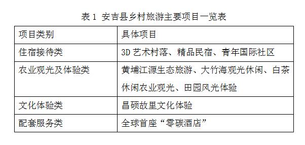 安吉縣鄉(xiāng)村休閑旅游目前形成了生態(tài)觀光、文化體驗(yàn)、民宿體驗(yàn)三大龍頭休閑旅游產(chǎn)品(見(jiàn)表1),借“黃埔江源"的品牌效應(yīng)及影視作品宣傳效應(yīng)吸引游客,借“一村一景”的藝術(shù)村落、多元化品質(zhì)民宿及智慧化服務(wù)留住游客是安吉縣鄉(xiāng)村旅游發(fā)展的成功經(jīng)驗(yàn)。