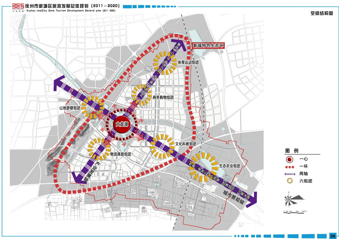 依托新城區旅游資源條件和建設基礎,圍繞徐州打造“區域旅游中心城市和重要旅游目的地”的發展目標,突出“財富活力”、“運動活力”、“生命活力”、“創意活力”和“城市活力”等五大主題旅游產品體系,以旅游為導向,注入文態、優化形態、提升生態、激活業態,實現新城城市空間優化和功能完善,營造現代時尚的公園新城和旅游新城,形成“大徐州”、“新徐州”城市大格局、旅游大格局的新引擎。