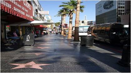 (二)好萊塢星光大道:好萊塢星光大道建于1958年,是條沿美國好萊塢大道與藤街伸展的人行道,上面有2000多顆鑲有好萊塢名人姓名的星形獎章,以紀念他們對娛樂工業的貢獻。