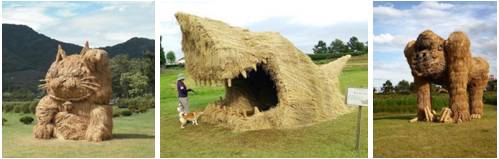 農業樂園,指利用農田中的各種元素,包括作物秸稈、輪胎、馬車、農具等,通過現代手法,結合農業生產,構建的特殊游樂場所。除了麥稈卷、稻草人等經典景觀外,還可形成多樣的卡通造型。如日本的香川縣和新瀉縣,每年都會舉辦水稻秸稈藝術造型雕塑展覽,把收割后的水稻秸稈制作成可愛的猛犸象、烏龜形狀,可供游客欣賞和攀爬玩耍,融藝術性與趣味性于一體。
