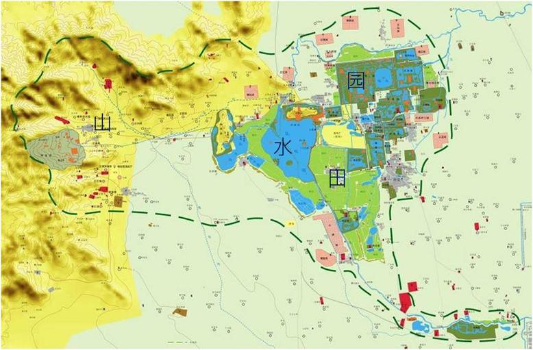 清代“三山五園”的文化景觀特點,概括起來就是山、水、田、園。其中的“田”,是以稻田為主的田野景觀,另外還有荷塘和其他種植類型的田。“園”,則是指園林。這些是本地區最重要的景觀特色。
