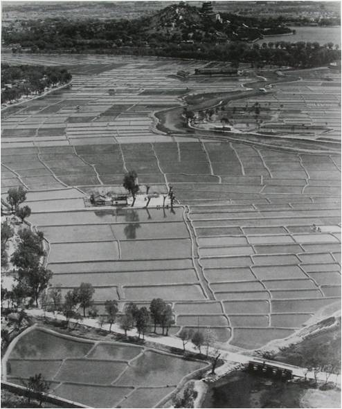清代“三山五園”皇家園林有一個重要景觀特點,就是在幾個主要的皇家園林周邊,遍布著稻田,大約有一萬多畝。水稻在海淀的大量種植,一方面是由于海淀一帶優越的水資源條件,適合于種植水稻。另一方面與清朝統治者的大力提倡有關,清帝對稻米情有獨鐘,并且水稻又有穩產的特點,因此皇帝在海淀大力推行水稻的耕種。