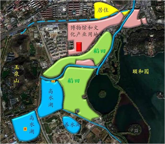 青龍橋、功德寺地區在歷史上屬于同一個區域,今天在規劃時應該作為一個區域進行規劃,不應將其分開規劃。整個區域可以作為文化設施和文化產業用地來開發,將稻田、寺廟、高水湖、界湖樓等景觀恢復起來,拆除功德寺前綠地中新建的與環境不協調的仿古建筑。