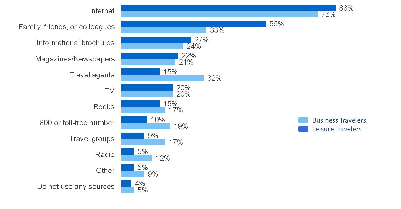 美國自助游及商務游客獲取旅行信息的主要渠道