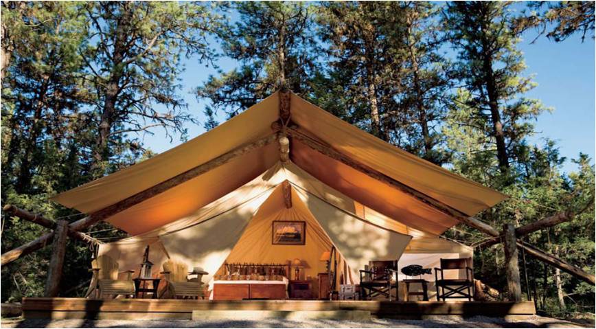 在景區(qū)的最佳落腳點創(chuàng)意比較獨特的住宿模式,如豪華帳篷、游艇、移動木屋等,讓游客有不同的住宿體驗。以豪華帳篷為例說明創(chuàng)意住宿的解決方案。豪華帳篷可以突破景區(qū)核心區(qū)對工程建設的限制,為游客提供零距離棲于美景的頂級住宿體驗。