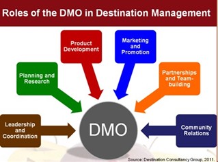 目的地管理組織(DMO)在目的地旅游中扮演著領導者的角色。目的地旅游中還存在著其他眾多角色,所以目的地管理組織(DMO)還在目的地團隊中扮演協調各方的角色。領導和協調的一些特定任務有: