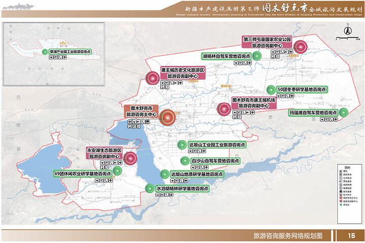 (一)第一步(2019-2021年),融入南疆自駕旅游大環線,打造優質過境地。圖木舒克市地處南疆自駕旅游大環線上,應凸顯集沙漠、湖泊、胡楊、濕地、山脈等多元景觀于一體的資源優勢,積極對接吐和高速,率先啟動“碧水金沙”自駕休閑旅游風景道建設,完善沿線旅游產業要素和自駕服務體系,以夜間燈光秀、網紅打卡地、節事活動季等集聚人氣,快速融入南疆自駕旅游大環線之中。