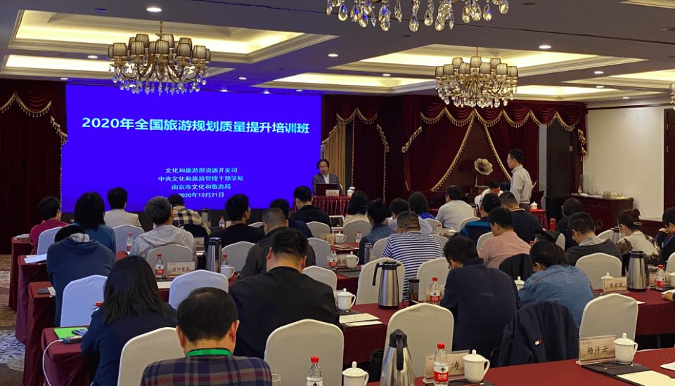 由文化和旅游部資源開發司主辦,中央文化和旅游管理干部學院以及南京市文化和旅游局承辦的全國旅游規劃質量提升培訓班在江蘇南京舉辦。文化和旅游部十四五規劃專家委員會專家委員、北京大學城環學院旅游研究與規劃中心主任吳必虎教授應邀作為培訓專家,以《十四五旅游規劃研制與與區域旅游目的地建設》為題,給學員們講授了兩個半小時的精彩內容。