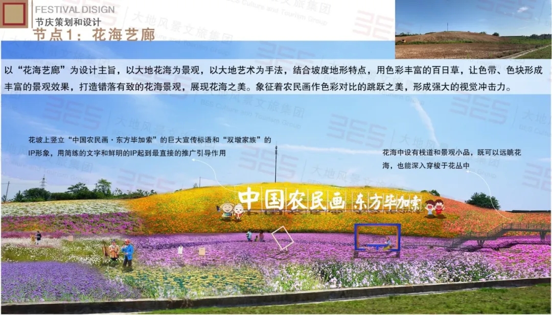 提出舉辦一場“大地拾彩——冶山大地藝術暢想季”,包括花海藝廊、稻田飛歌、梨享生活、幸福茶園、大地野趣五大節點,以及一場種畫人計劃。