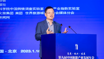 為貫徹落實黨的二十大關于文化和旅游工作的決策部署,貫徹落實2023年全國文化和旅游廳局長會議精神,第九屆中國旅游產業發展年會于2023年1月15日至16日在北京市舉辦。本屆年會將以“復蘇 振興 發展”為主題,旨在重振行業信心,探究新格局下產業發展趨勢,全力推進旅游業高質量發展。