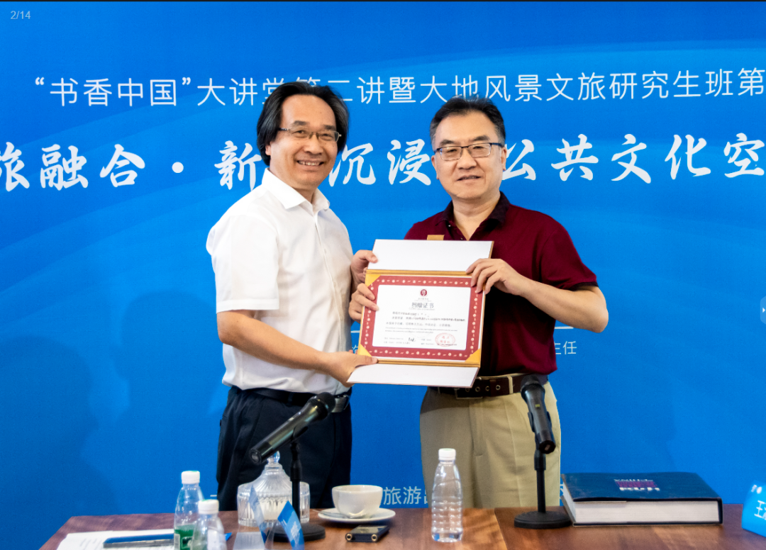 6月28日,由中國旅游出版社和大地風景文旅集團聯合主辦的“書香中國”大講堂第二講暨大地風景文旅研究生班第四期在北京市昌平區游歷圖書館舉辦,中國旅游書店·游歷書院揭牌儀式同期舉行。