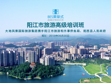 2016年6月30日,由陽江市旅游和外事僑務局、陽西縣人民政府主辦,廣東方直集團聯合承辦,大地風景國際旅游咨詢集團協辦的陽江市旅游高級培訓班在廣東省陽江市陽西縣人民政府禮堂盛大舉行。廣東省旅游局領導、陽江市領導、市旅游局及各縣旅游局領導、陽西縣政府各級領導、廣東省當地媒體等近千位學員參與了培訓。$4br$5