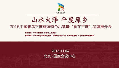 2016年11月4日, 2016中國青島平度旅游特色小鎮暨“食在平度”品牌推介會在北京·國家會議中心隆重舉行。國家有關部委領導、知名學者和駐京央企、民營強企、科研院所負責人、平度市委、市政府主要領導以及媒體記者等共200余人出席了本次大會。本次活動旨在凸顯平度市作為“全國中小城市綜合改革試點市”和“中國最具投資潛力中小城市50強”的整體優勢,招徠大型投資商蒞臨平度市投資旅游項目、發展旅游特色小鎮,推動平度特色小鎮建